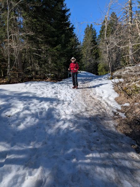 Balade du matin. Chaud au soleil et frais à l'ombre. Encore de la neige et crampons nécéssaires.