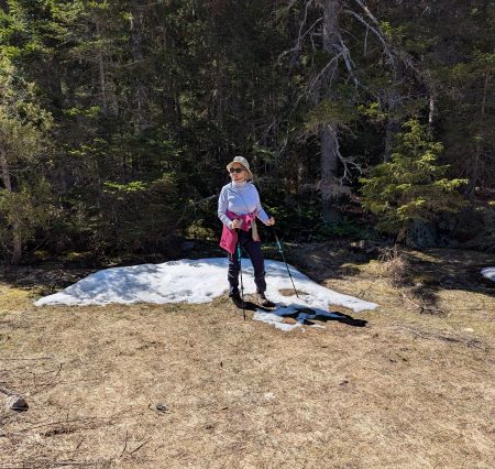 Balade du matin. Chaud au soleil et frais à l'ombre. Encore de la neige et crampons nécessaires.